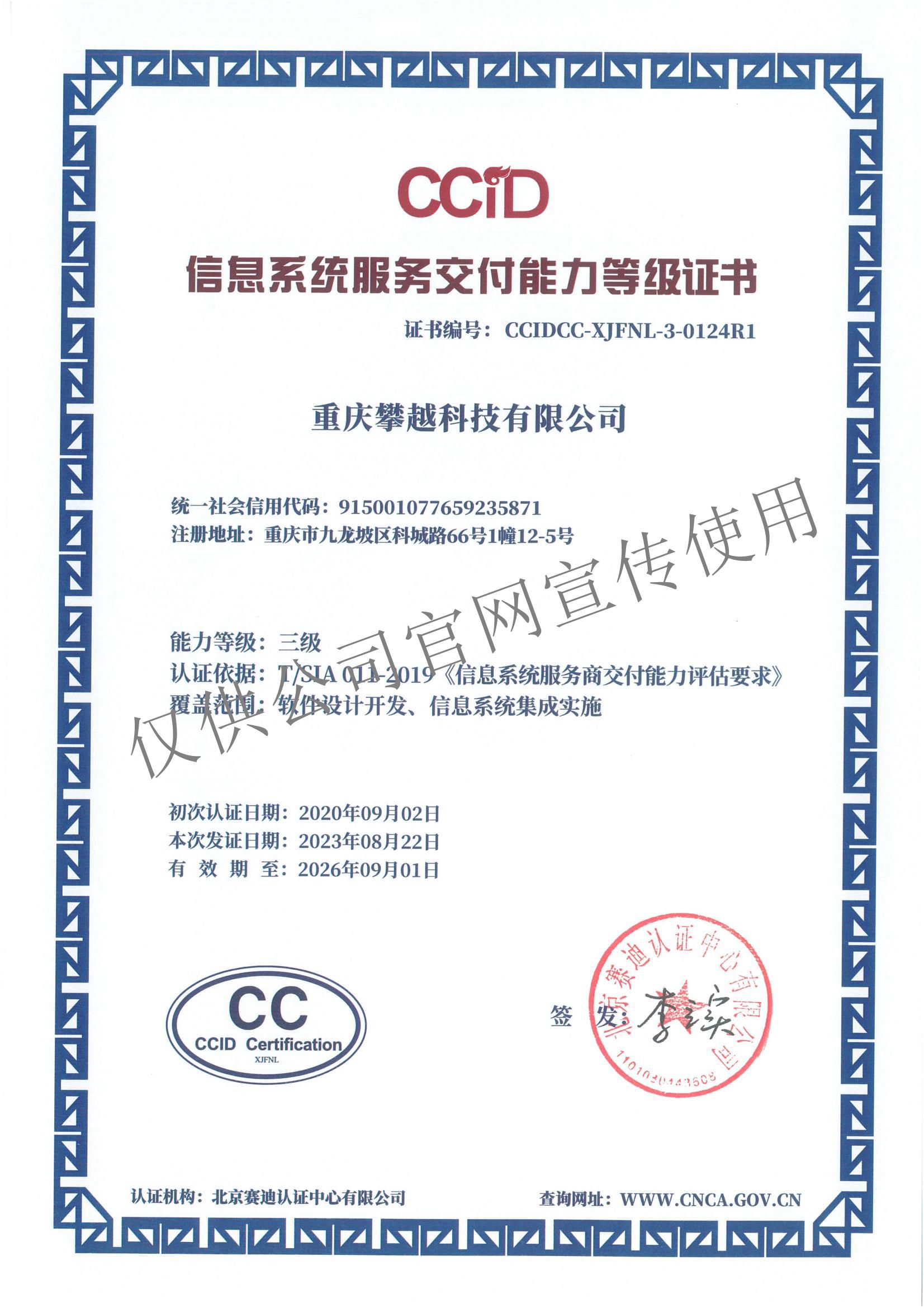 • ?信息系統服務交付能力叁級